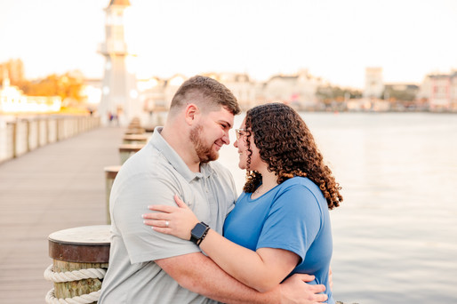 You wouldn’t know from the beautiful glow of the sun and their smiling faces, but it was freezing cold on the evening of this surprise proposal at the Disney World Boardwalk! We wandered from the back of the Yacht Club Resort, snapping a few photos as we made our way toward the dock, all the while watching for the sun to drop just far enough to create this beautiful setting. I had already asked Josslyn, a college senior, if she was fine with me snapping a few solo “senior shots,” and while she was angled toward the water, Jonathan pulled the ring box from my camera bag and knelt in the sand behind her. Her immediate reaction after turning around was a stream of happy tears followed by a big “yes!”
